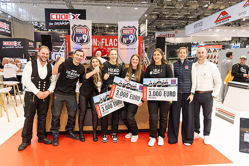 Ein besonderer Höhepunkt unseres Messeauftritts war das große Finale der MISSION: FLACHDACH 2.0, das direkt an unserem Messestand stattfand. 20 Nachwuchstalente aus dem Dachdeckerhandwerk stellten sich live der Herausforderung, einen Aufsatzkranz fachgerecht mit Flüssigkunststoff einzudichten und überzeugten mit Präzision, handwerklichem Können und großer Leidenschaft. Am Ende konnten sich Maren May, Lena Heinen und Sarah Lahnstein durchsetzen und sicherten sich jeweils 3.000 Euro Meisterzuschuss – ein starkes Zeichen für die Zukunft des Handwerks und für den Nachwuchs der Branche.