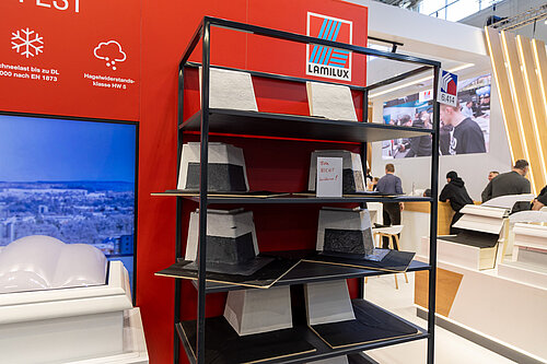 Auf unserem Stand können Sie unser vielfältiges Produktportfolio fürs Flachdach live erleben: vom vielseitigen LAMILUX Modularen Glasdach MS78 und unserer robusten LAMILUX Lichtkuppel F100 W über praxisnahe Sanierungslösungen für Aufsatzkranzprodukte bis zu dem bewährten LAMILUX Flachdach Ausstieg Komfort Swing. Als besonderes Highlight stellen wir Ihnen zudem erstmals den LAMILUX Flachdach Ausstieg Service FE vor. Eine Neuheit, die Sie direkt bei uns live erleben können.