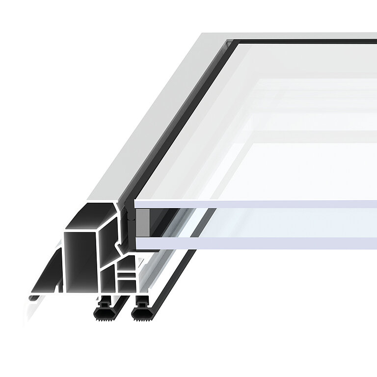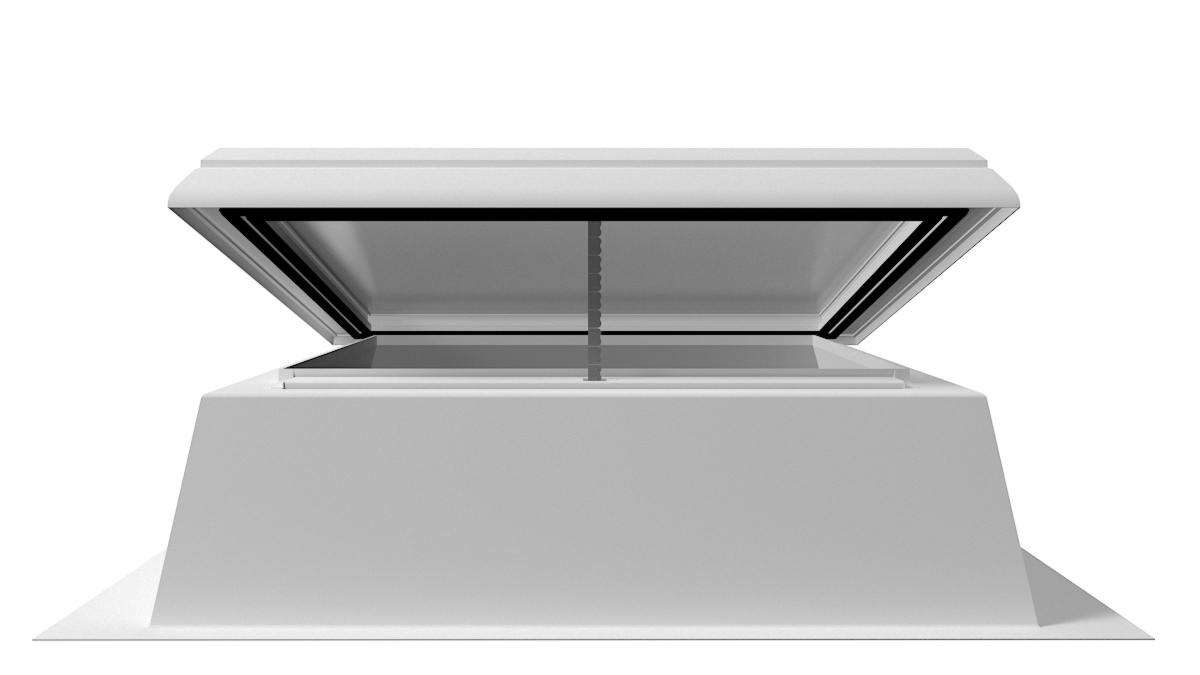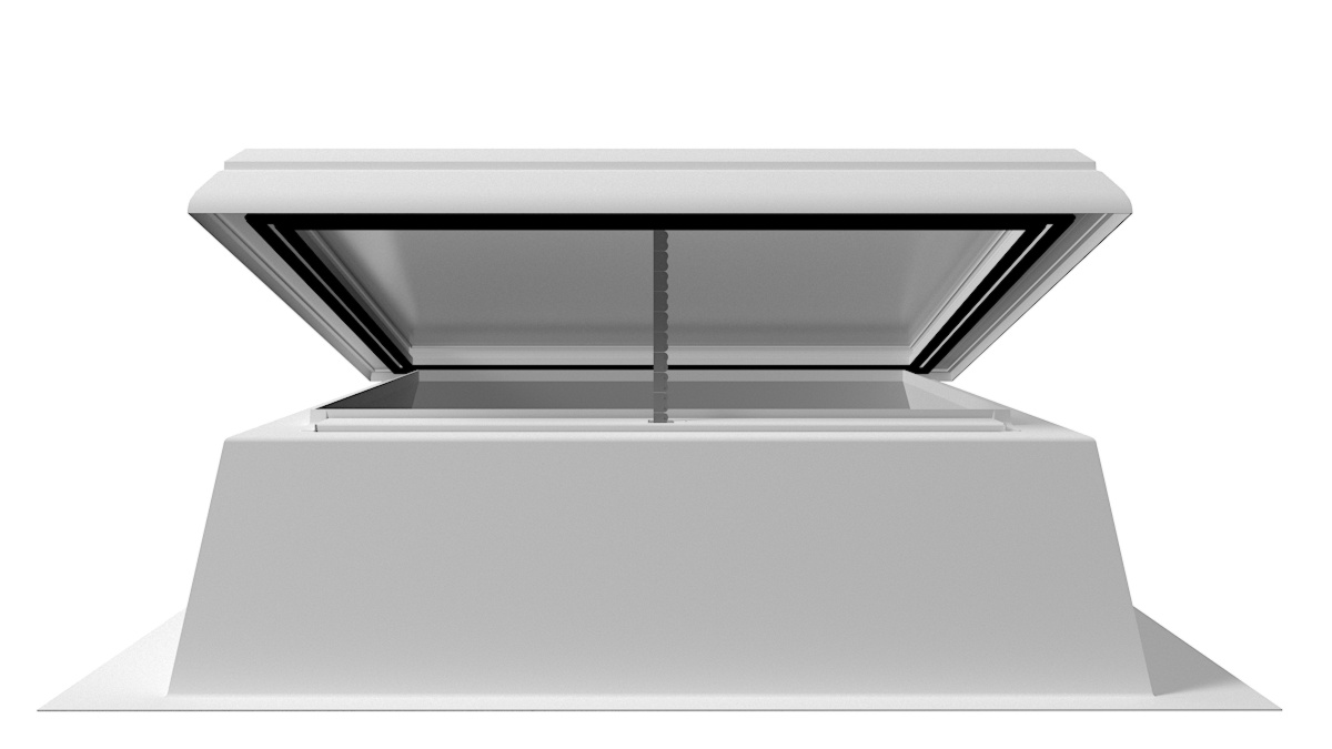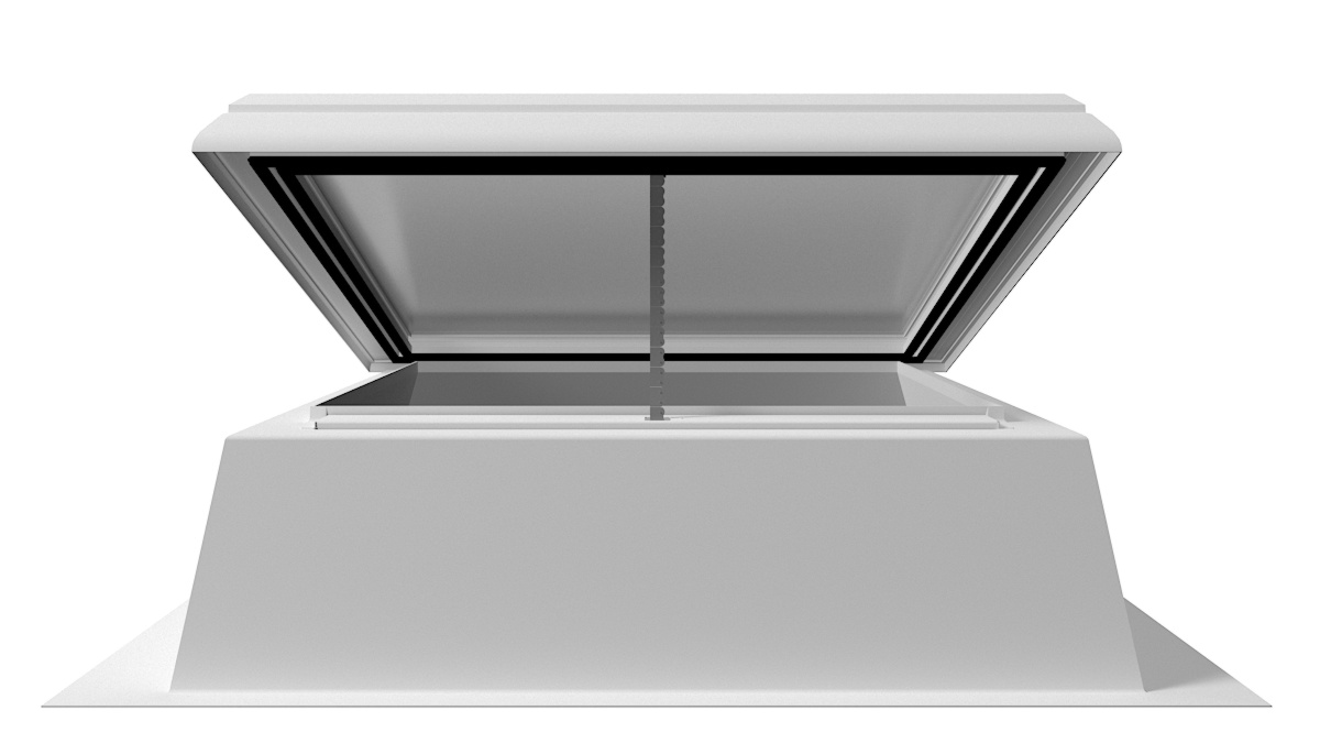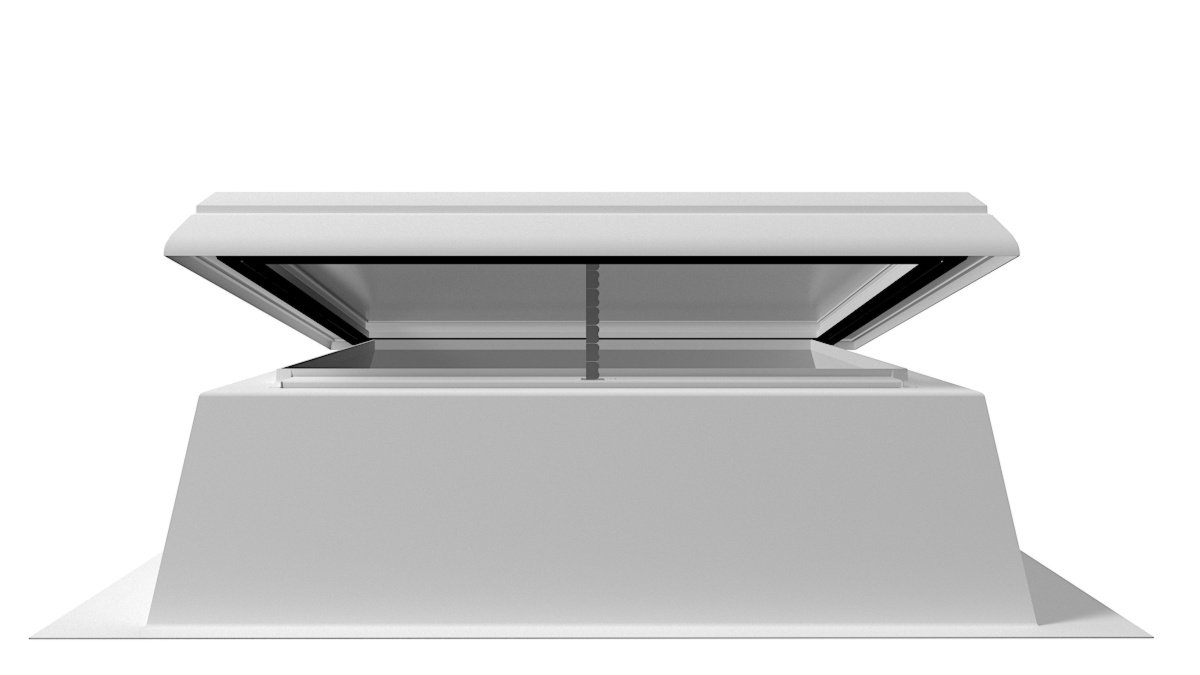 Die Öffnung erfolgt einfach und kraftunterstützt über Gasdruckfedern – geeignet für 2-Scheiben-Verglasungen bis 120 x 120 cm und 3-Scheiben-Verglasungen bis 100 x 100 cm.