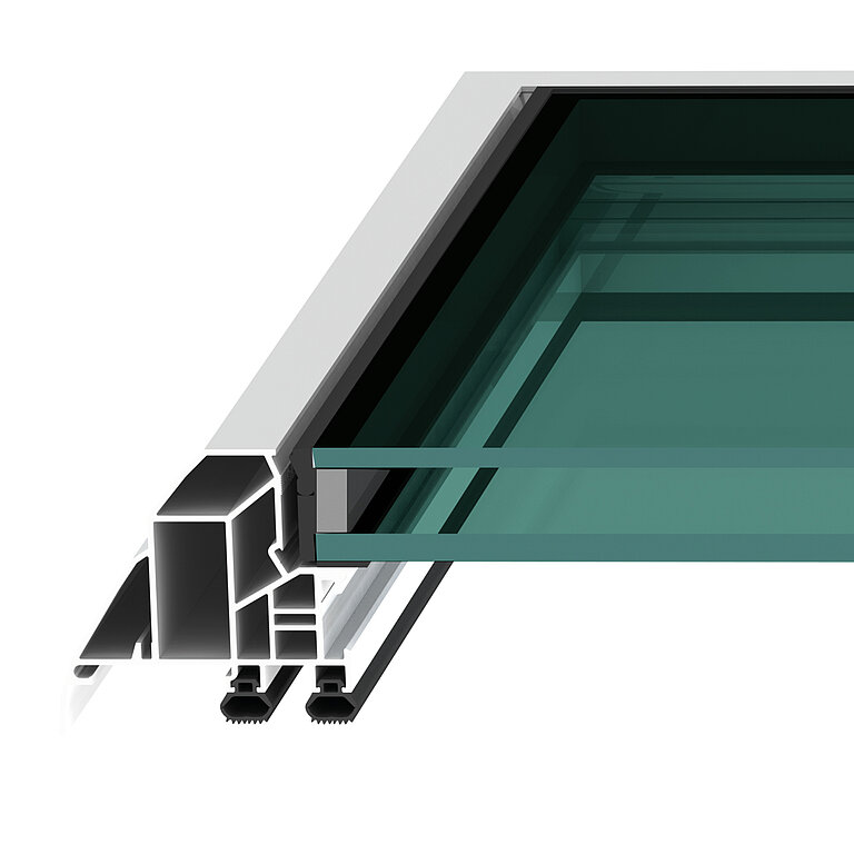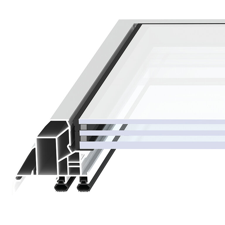 Der Sonnenschutz ist wahlweise innenliegend mit Sicherheitszugbändern, außenliegend als Rollo oder als starre Variante mit Laubbaumeffekt erhältlich. Optional ist auch eine Ausführung mit integriertem Solarmodul möglich.