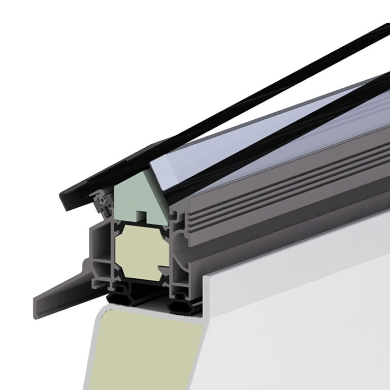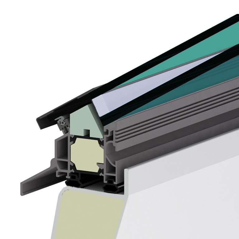 Das LAMILUX Flachdach Fenster FE Pyramide / Walm überzeugt nicht nur durch seine markante Geometrie, sondern auch durch innere Werte: Eine patentierte Strukturrippung im Aluminiumrahmen nutzt gezielt die Wärme der Raumluft und sorgt für einen erhöhten Temperaturverlauf entlang des Rahmens. Das Ergebnis ist ein knickfreier Verlauf der sogenannten Isothermen – Temperaturlinien, die in der Bauphysik messbar machen, wo Wärme bleibt und wo sie verloren geht. Beim FP / FW bleibt die kritische 10 °C-Isotherme sicher innerhalb der Konstruktion. Das sorgt für maximale Energieeffizienz und deutlich reduzierte Kondensat-Gefahr.
