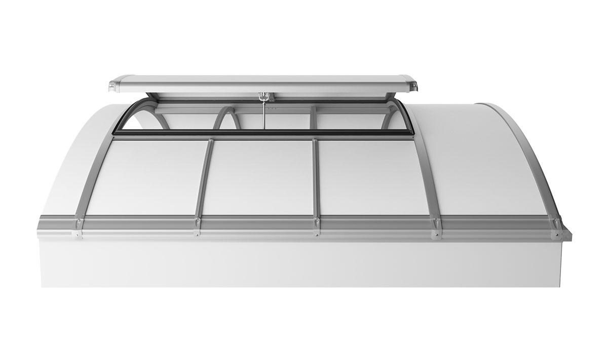 Die Verglasung erfüllt die Anforderungen an harte Bedachung (Broof(t1)) und kann optional als ausschmelzbare Fläche ausgeführt werden