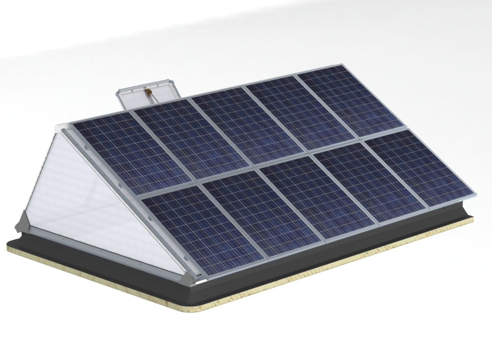 Das LAMILUX Lichtband S energyline kombiniert optimale Belichtung mit integrierter Photovoltaik. Es bringt gleichmäßig natürliches Licht ins Gebäude, produziert gleichzeitig grünen Strom und reduziert so Energiebedarf und Betriebskosten. Mit geprüfter Stabilität, Wärmedämmung und Langlebigkeit ist es die ideale Lösung für nachhaltige Architektur der Zukunft.