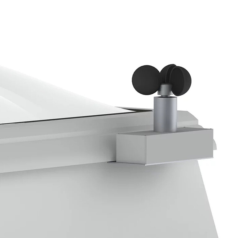 Automatisiertes Schließen der Lichtkuppel bei Wind und Regen durch werkseitig am Kuppelrahmen montierte Sensoren