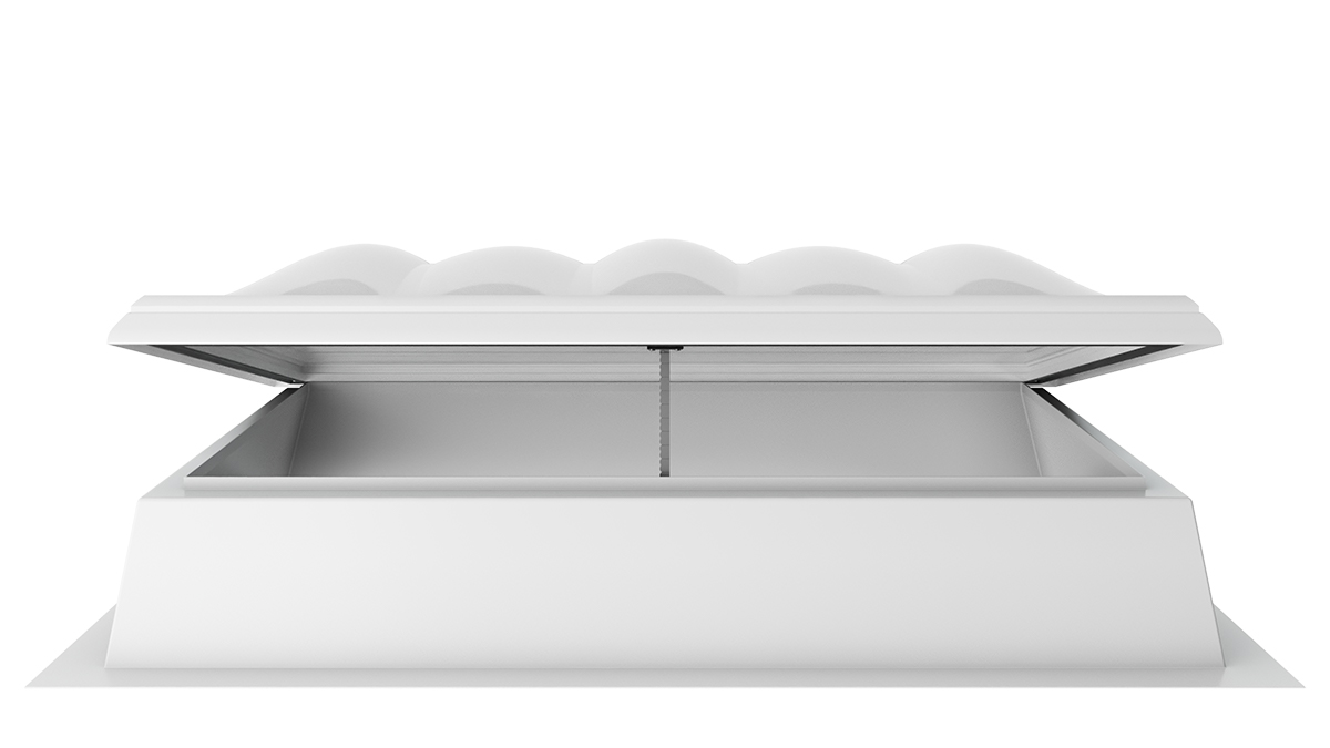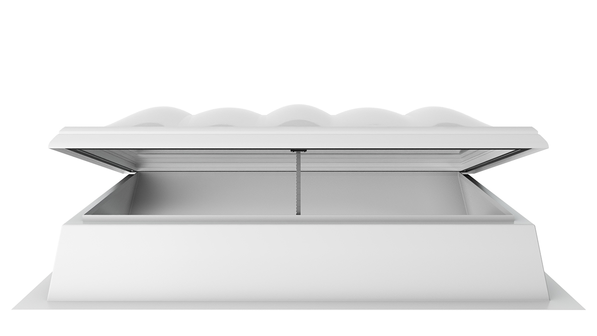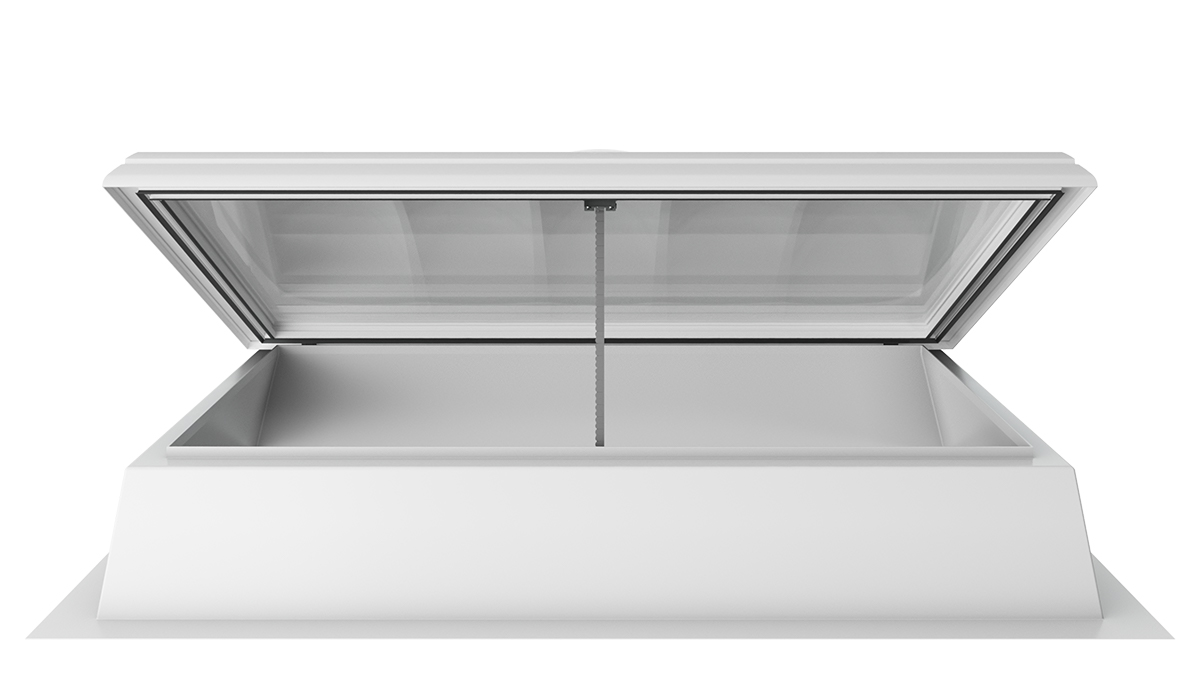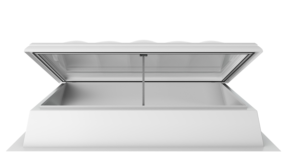 Die Lichtkuppel F100 W ist nicht nur ein zuverlässiges Tageslichtelement, sondern lässt sich auch als zertifiziertes Rauch- und Wärmeabzugsgerät (RWG) einsetzen. Im Brandfall öffnet sich die Kuppel automatisch und leitet Rauch sowie Hitze schnell nach außen. Das sichert Flucht- und Rettungswege, erleichtert die Brandbekämpfung und schützt Leben.