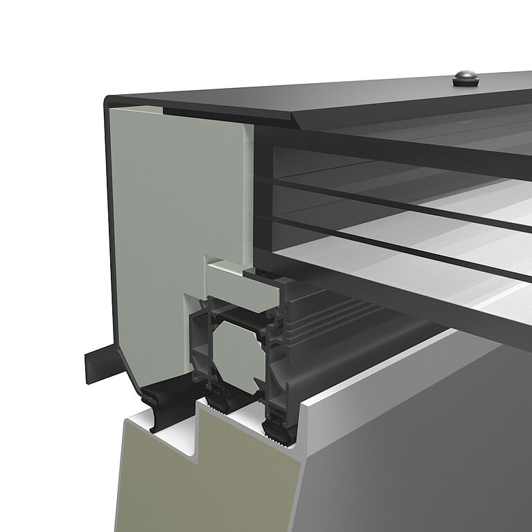 Der Sonnenschutz ist wahlweise innenliegend mit Sicherheitszugbändern, außenliegend als Rollo oder als starre Variante mit Laubbaumeffekt erhältlich. Optional ist auch eine Ausführung mit integriertem Solarmodul möglich.