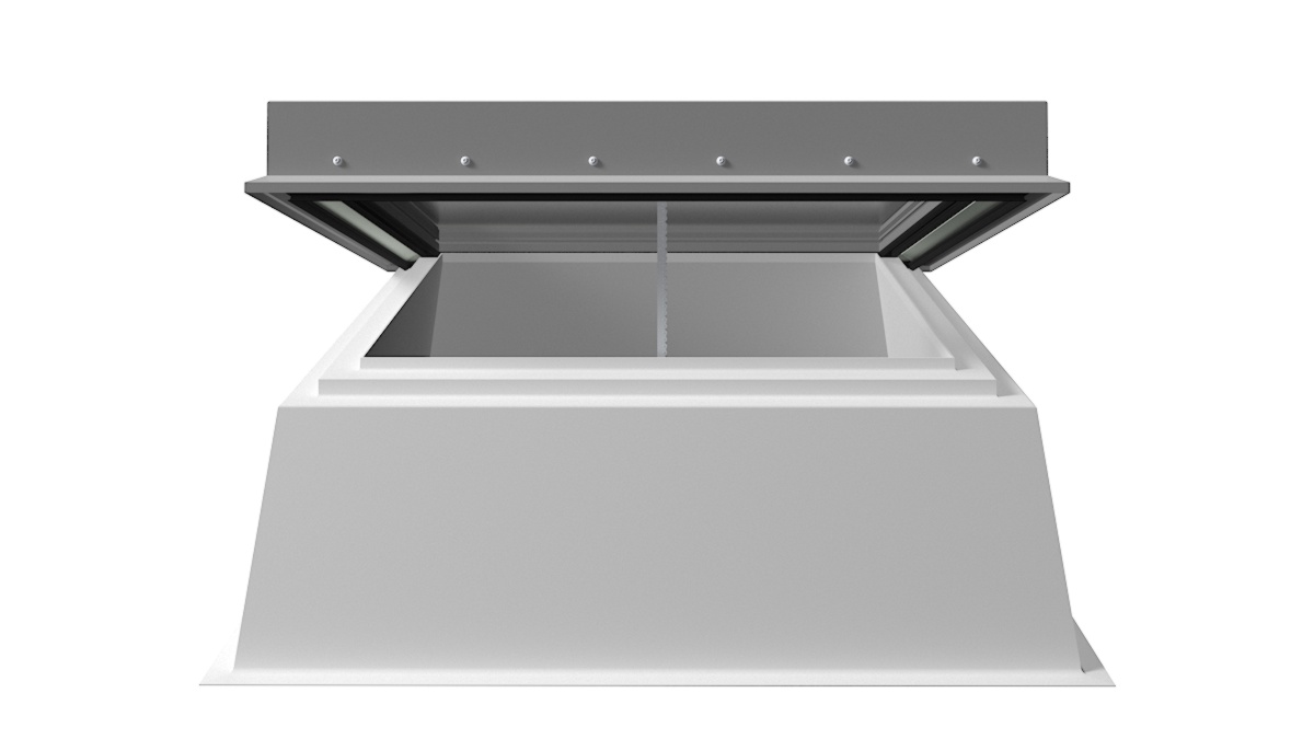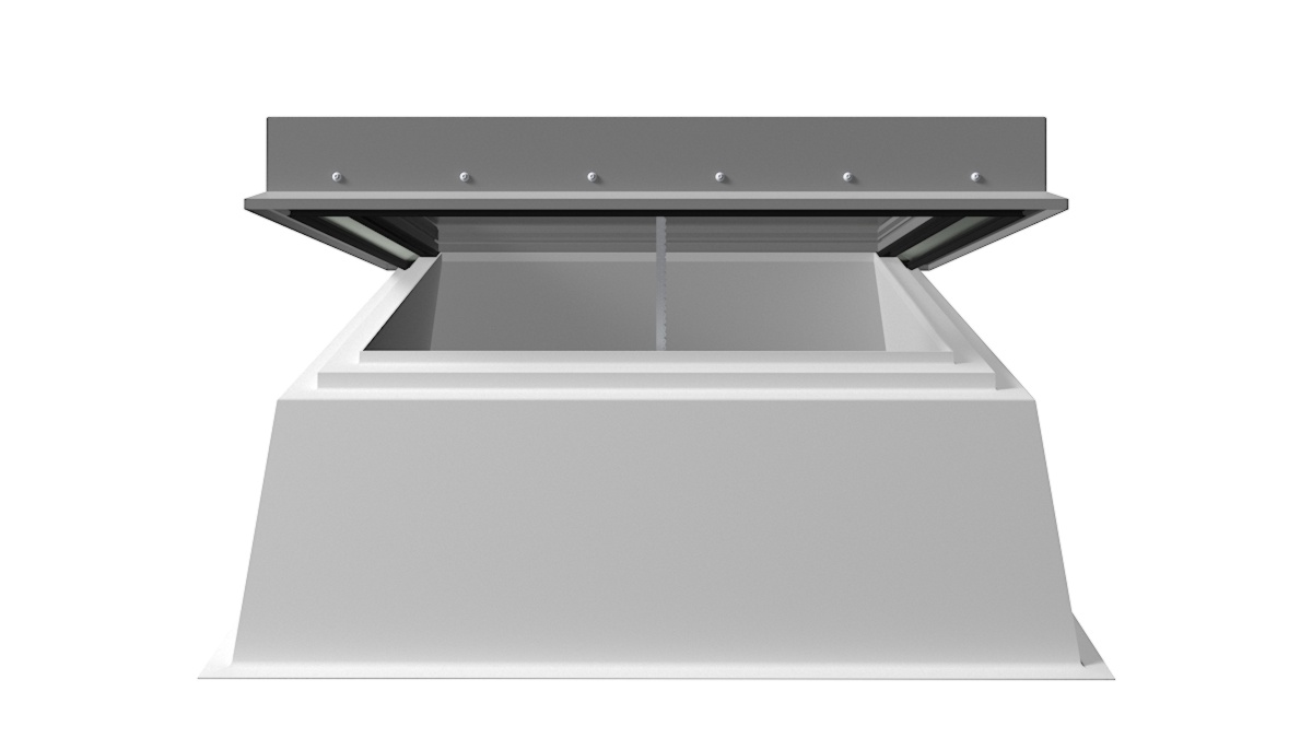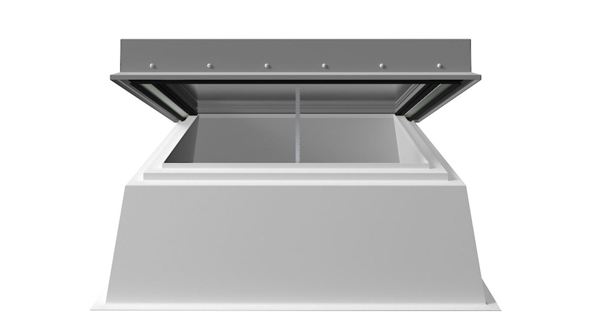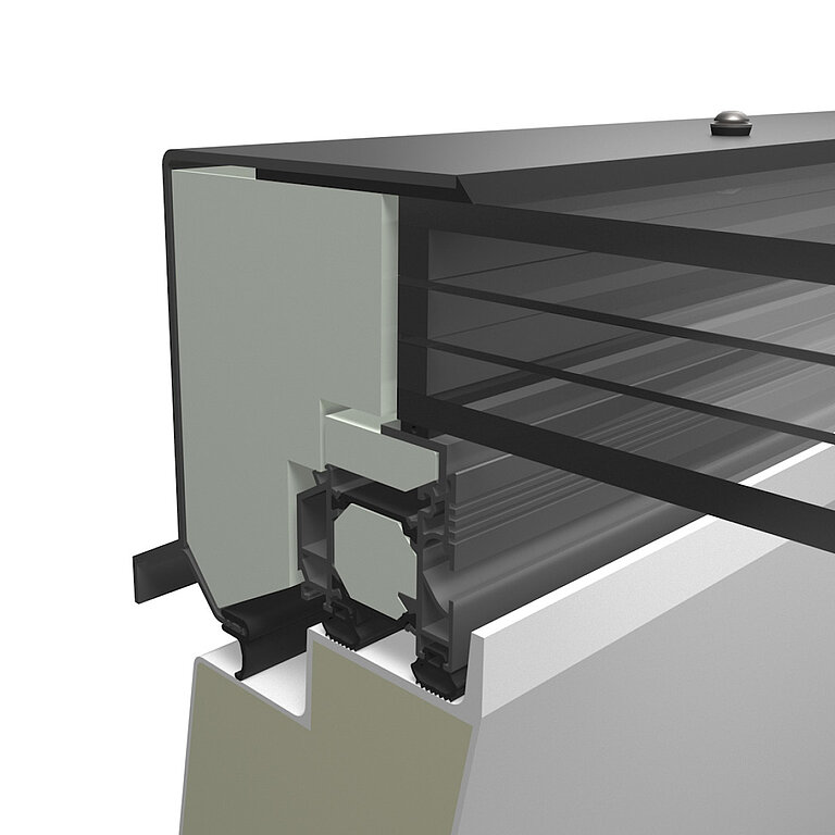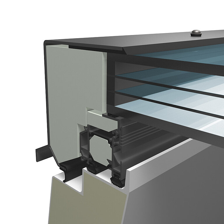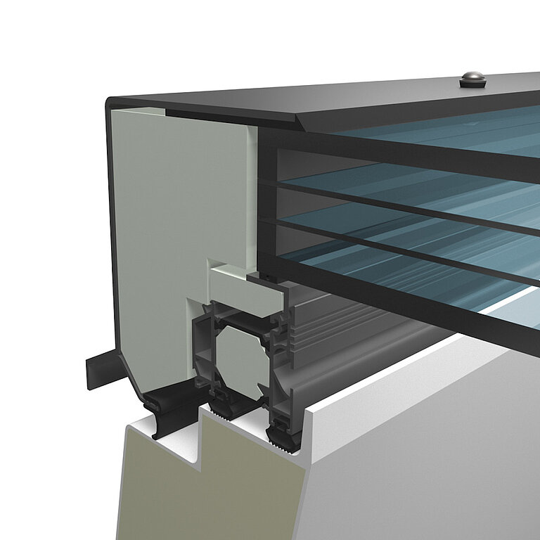 Optional für alle Größen als elektrisch betriebener, innenliegender Blendschutz, der an den Innenseiten des Aufsatzkranzes befestigt wird