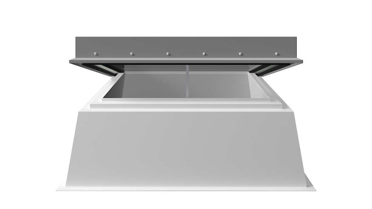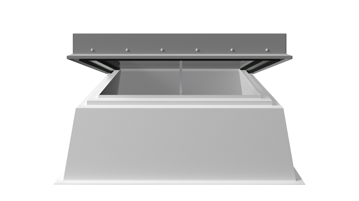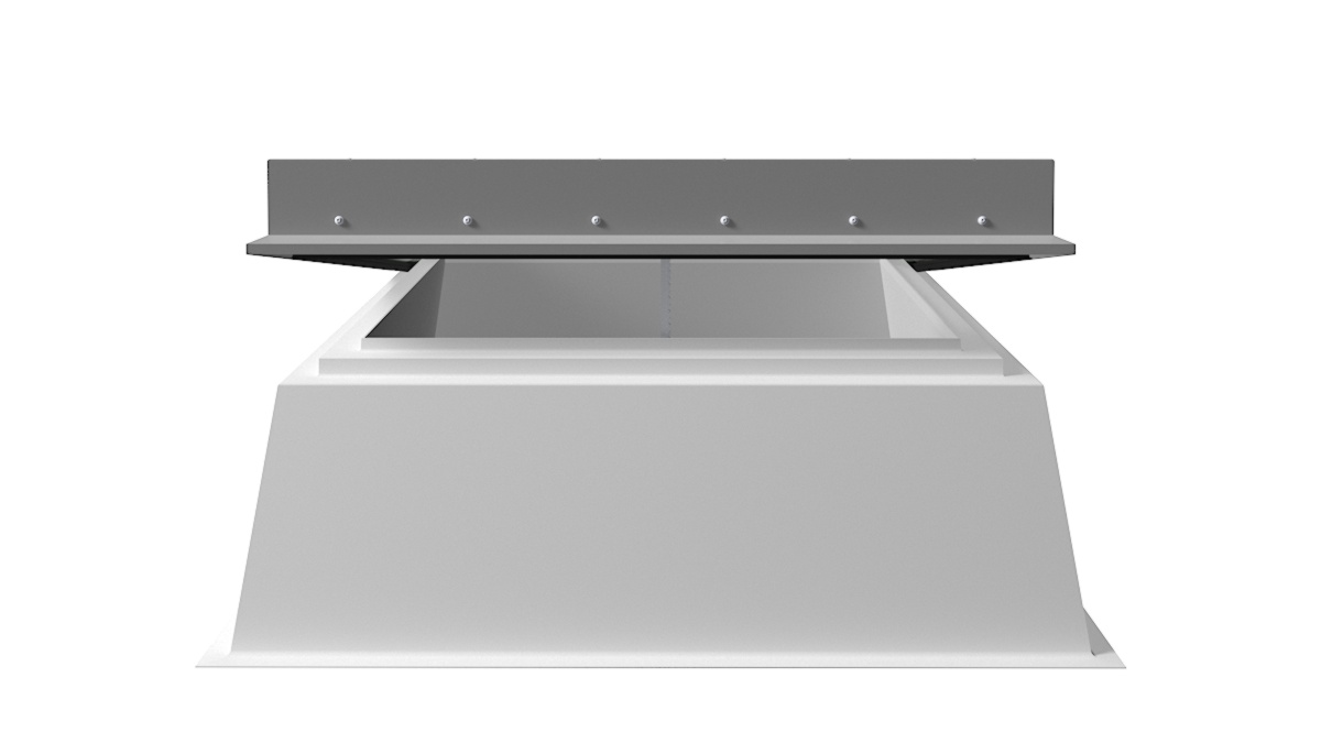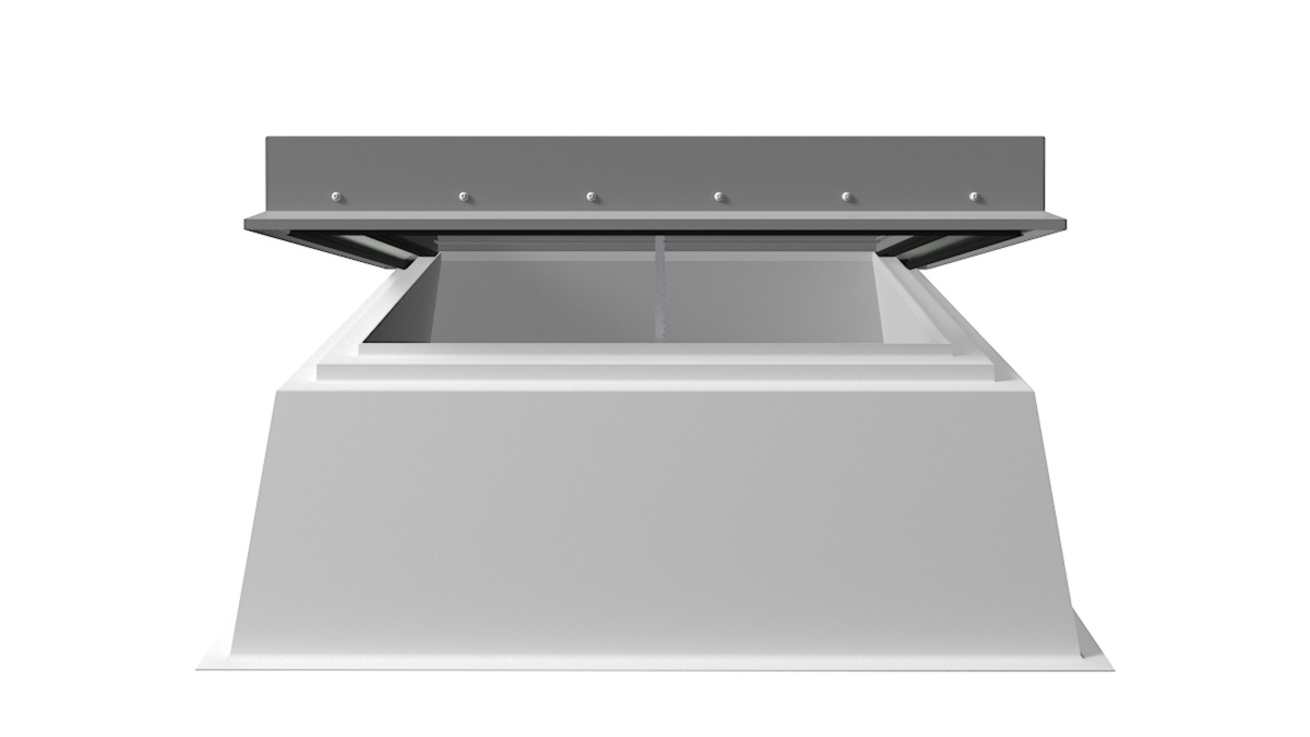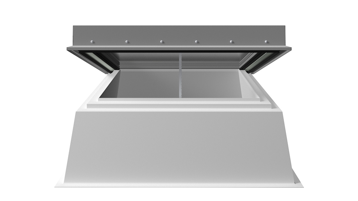 Optional für alle Größen als elektrisch betriebener, innenliegender Blendschutz, der an den Innenseiten des Aufsatzkranzes befestigt wird